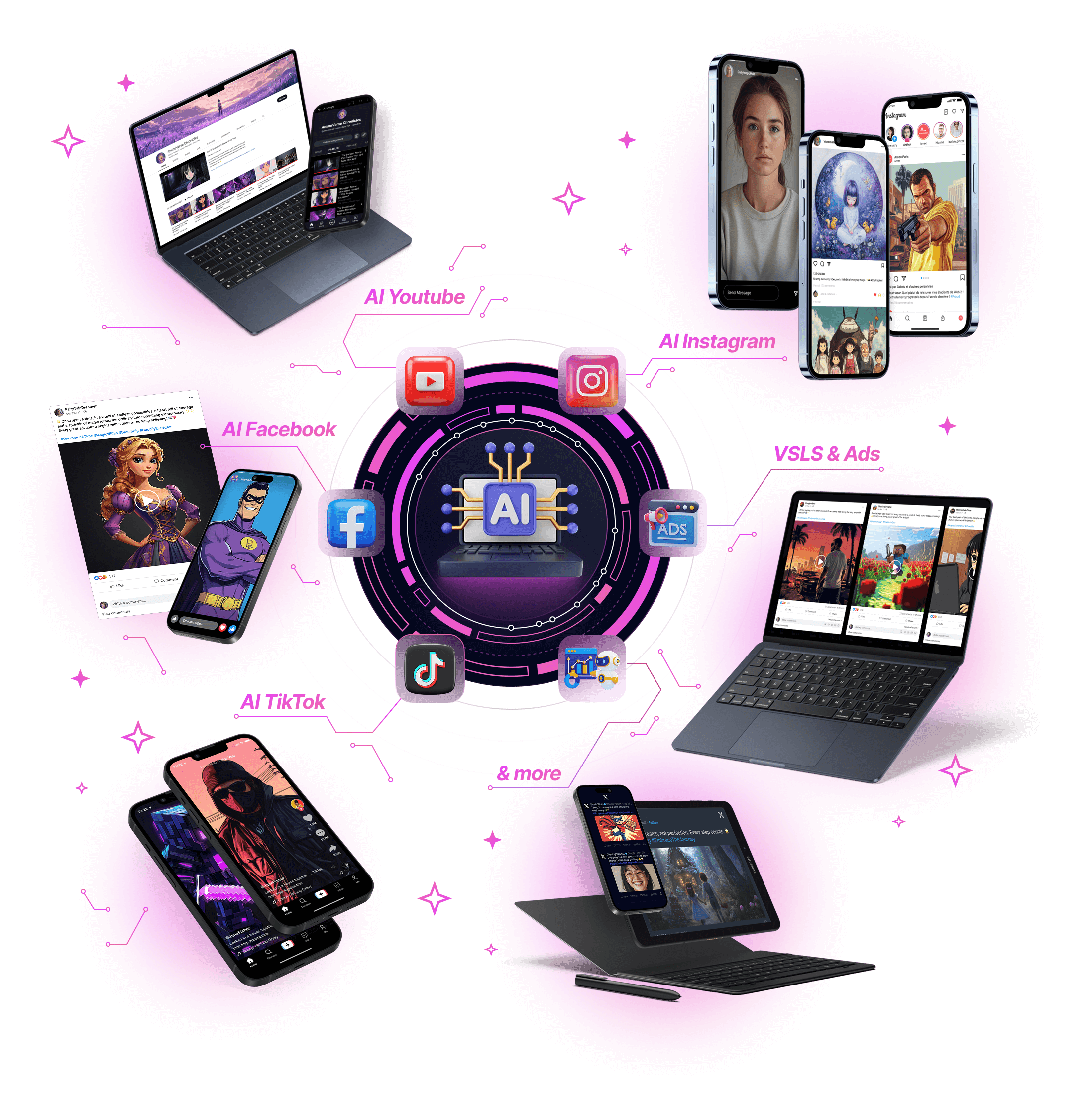 Get everything you need under one roof to create 100s of AI video traffic channels.